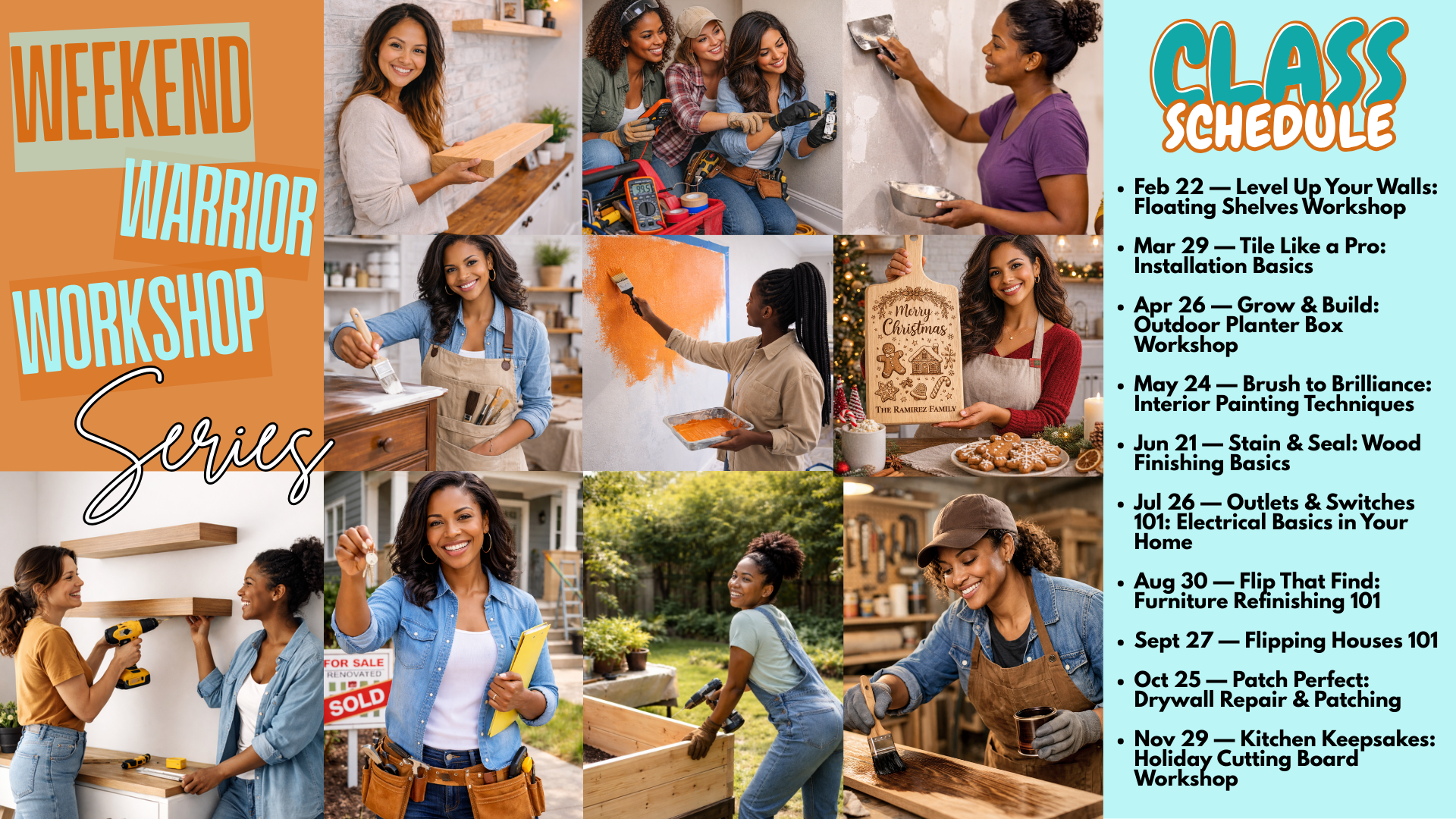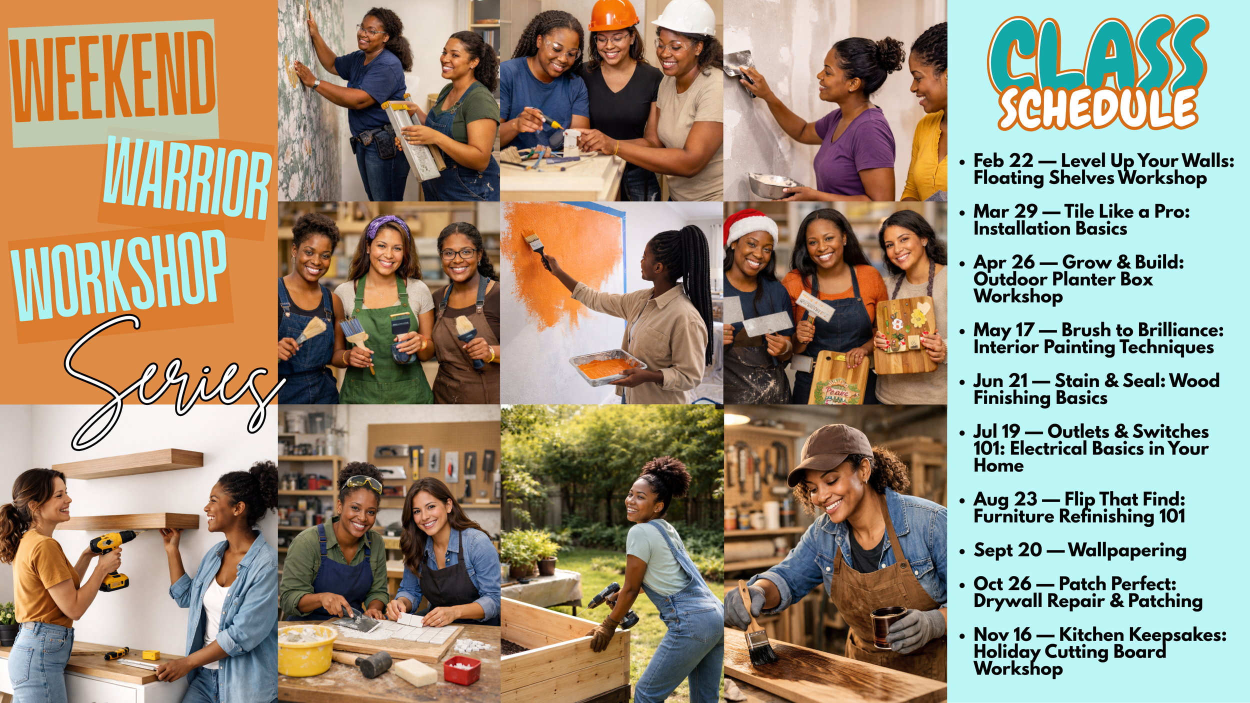 With small class sizes and all materials provided, participants leave not just with new skills, but with the confidence to tackle projects on their own. Whether you’re a first-time homeowner, a DIY enthusiast, or simply curious to learn, Weekend Warrior offers a welcoming space to create, connect, and empower yourself through practical know-how.